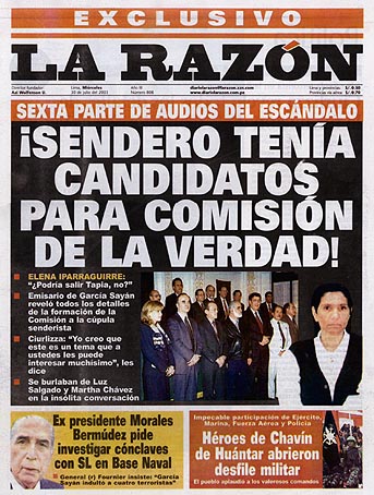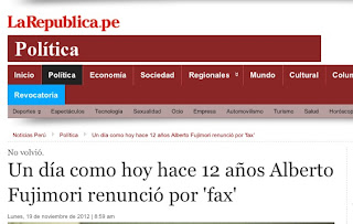 -- EE.UU TUMBO A FUJIMORI -- ESTADO FALLIDO -- ...QUE FUJIMORI DESAPARECIO AL SIMA ? -- NUESTRA MARINA MERCANTE -- SENTENCIAS DESPROPORCIONADAS, ¿CORTINAS DE HUMO? -- UNA MIRADA AL PASADO IZQUIERDISTA -- EL PODER COMUNISTA EN LA JUSTICIA PERUANA -- 20 HECHOS DESPUES DEL AUTOGOLPE DE FUJIMORI -- NEGOCIACIONES DE JAVIER CIURLIZZA CON TERRORISTAS DE SENDERO LUMINOSO Y EL MRTA