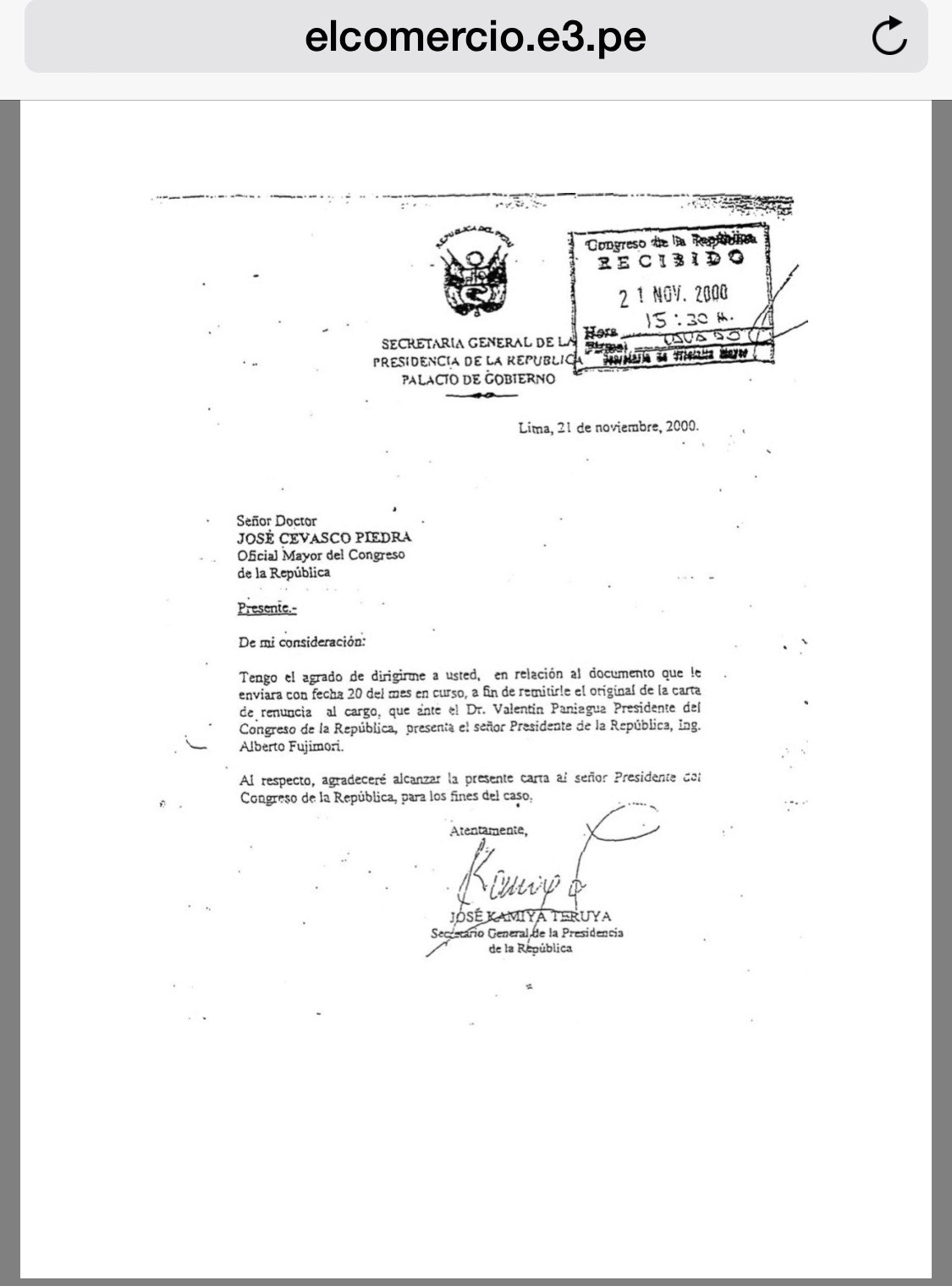 Esta entrevista fue realizada el sábado 20 de mayo del año 2000 (Fujimori cayo meses despues) y, en esa misma fecha, Toledo ofreció las siguientes declaraciones al diario El País de España, publicado al día siguiente en el matutino de oposición “La República” de Lima-Perú:
